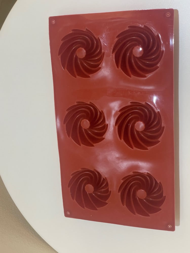 • قالب سيلكون وردات يتميز بتصميمه الحلزوني الذي ينتج قطع ذات شكل جذاب ومختلف عن القوالب المعتادة.