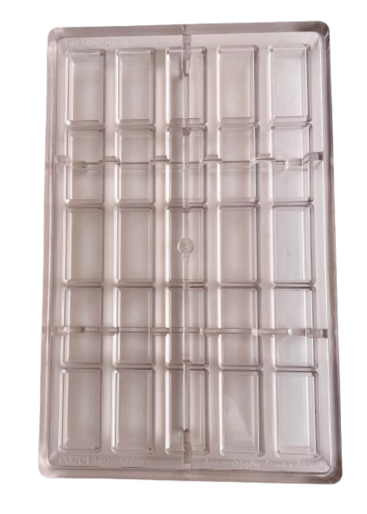 - نتائج متطابقة: يضمن لك القالب الحصول على قطع شوكولاتة جميعها بنفس الحجم والشكل المستطيل المحدد بدقة، مما يعطي مظهرًا مرتبًا ومتناسقًا لمنتجاتك النهائية.
